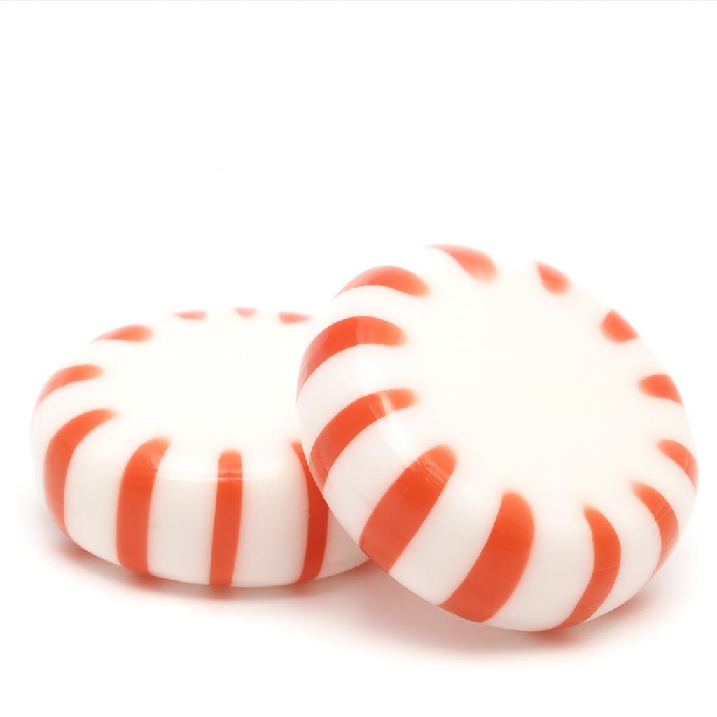 Söta polkagris-karameller, mintig pepparmintsgodis.