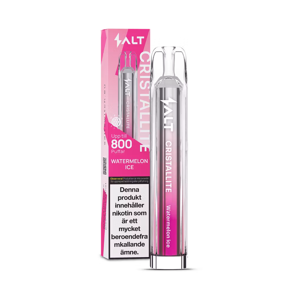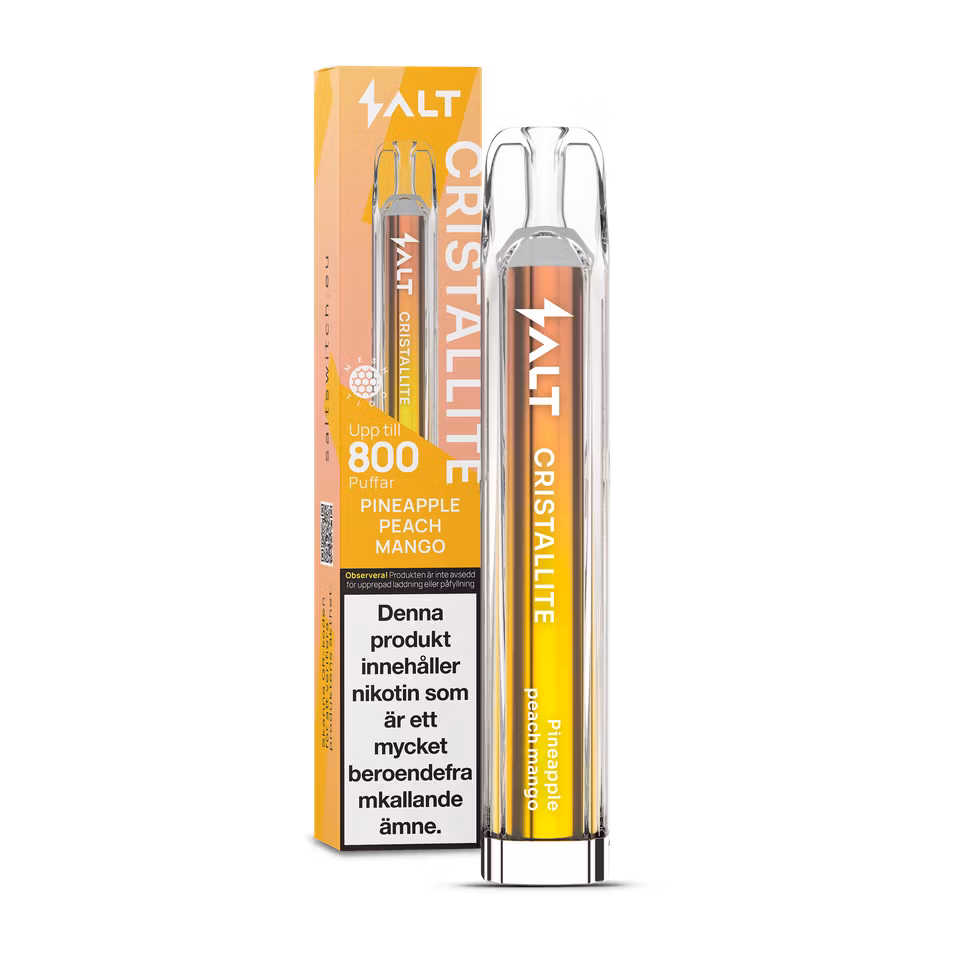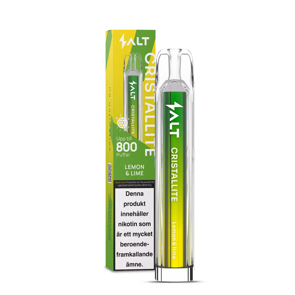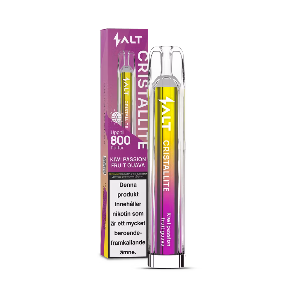 Salt Cristallite är en serie engångs vapes som levererar ett enkelt och konsekvent alternativ för den som vill ha en färdig produkt utan påfyllning eller laddning. Varje vape är förfylld och klar att användas direkt ur förpackningen och ger upp till 800 puffar beroende på användning. Designen är kompakt och lätt att ta med, vilket gör den praktisk för vardagligt bruk och resa.