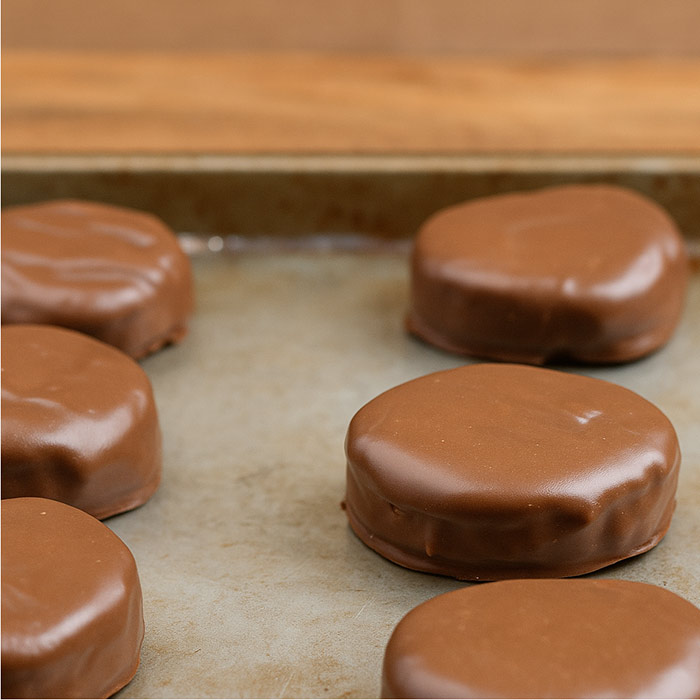 A chocolate cookie with a minty crunch. Chocolate mint flavor with none of the calories!